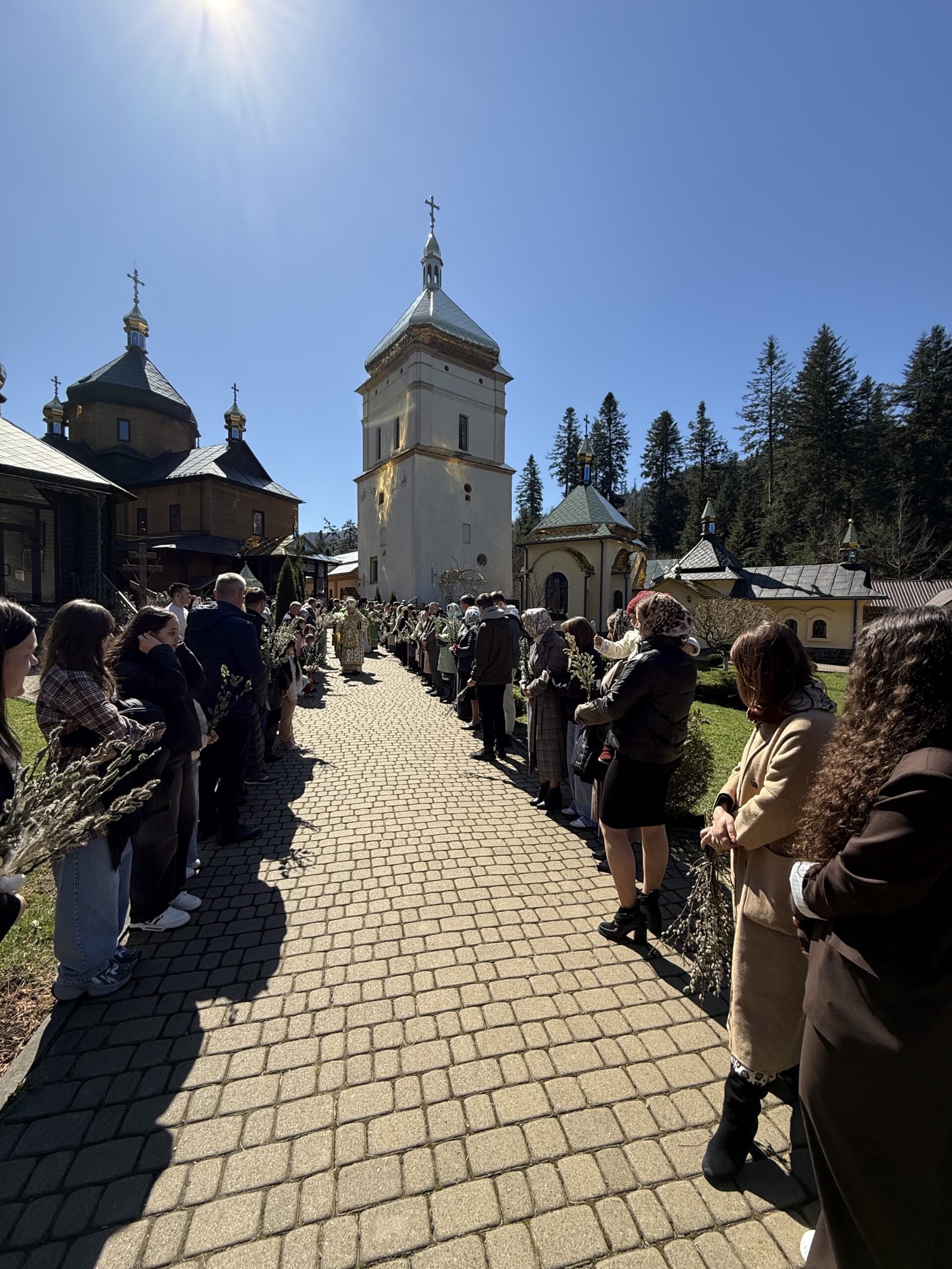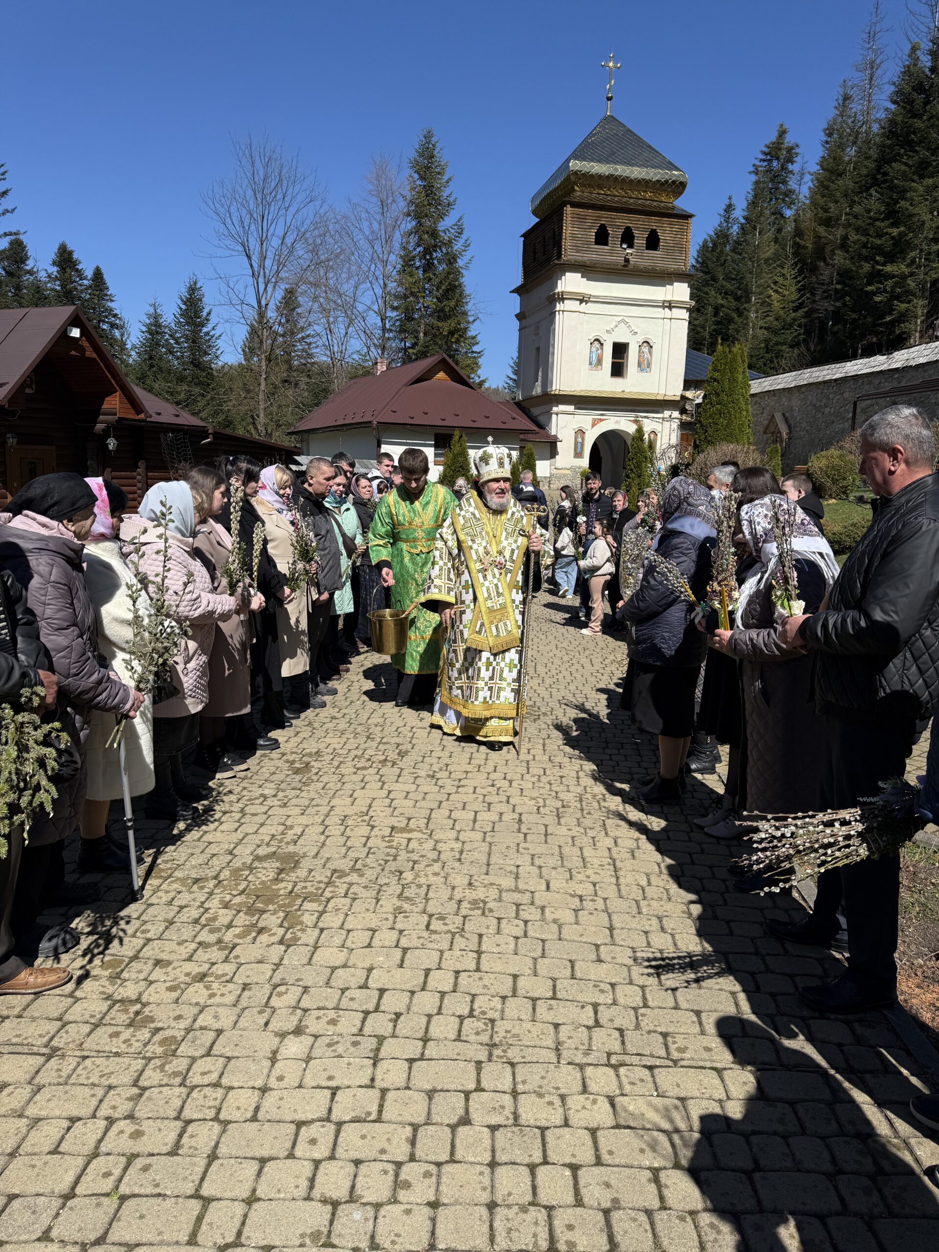 13 квітня 2025 року, за шість днів до Воскресіння Христового, Православна Церква відзначає одне з дванадесятих свят – Вхід Господній в Єрусалим або як його називають в народі – Вербна Неділя. Недільного дня, Входу Господнього в Єрусалим, Богослужіння святителя Іоана Золотоустого у Соборі Хрестовоздвиженського Манявського чоловічого монастиря очолив Високопреосвященійший Іоасаф, митрополит Івано-Франківський і Галицький, якому співслужив намісник Українського Афону ігумен Іоасаф та духовенство у монашому сані. Проповідь перед причастям вірних виголосив отець намісник, ігумен Іоасаф. Свято Входу Господнього до Єрусалиму є одним з найулюбленіших християнських свят, тому з року в рік у цей день монастирський храм наповнюється вір’янами, які приходять і приїжджають до обителі, щоби традиційно освятити гілки верби. Після відпусту Богослужіння, Архипастир від імені братії, привітав усіх присутніх з сьогоднішнім святом та побажав у ці особливі дні Великого посту, Господнього благословення та молитовного настрою в очікуванні Світлого Христового Воскресіння. Закінчуючи святкове богослужіння Вербної Неділі, митрополит Іоасаф окропив вербове гілля та всіх присутніх святою водою.