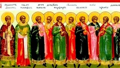 Юнак Юліан, родом каппадокієць, підходячи до Кесарії, побачив тіла святих, кинуті без поховання на поживу звірям, Підійшовши до них, Юліан схилив коліна і поцілував тіла страждальців. Ті, що стояли осторонь воїни схопили його, повели до правителя, який засудив святого Юліана на спалення. Тіла всіх 12-ти мучеників перебували без поховання протягом 4-х днів. Ні звірі, ні птахи не торкнулися їх. Збентежені цією обставиною, язичники дозволили християнам взяти тіла мучеників і поховати їх.