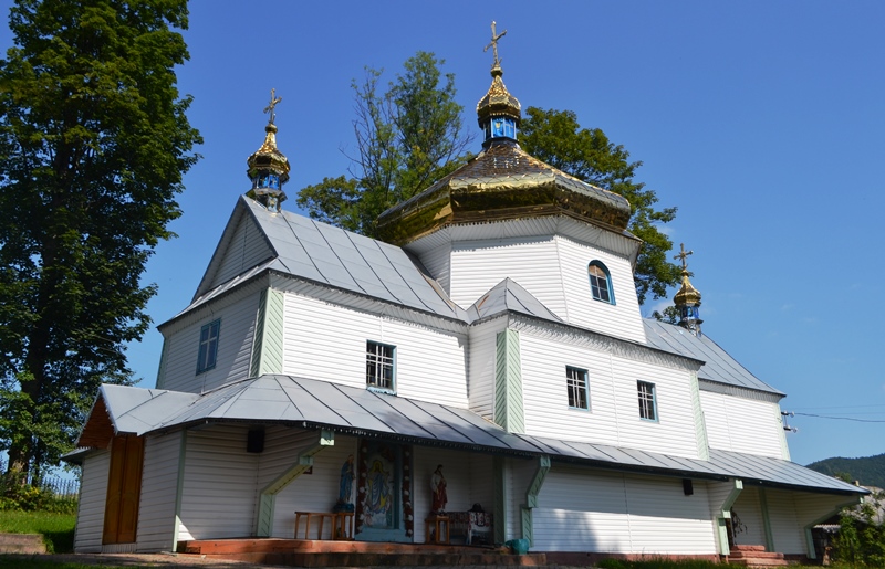 Кораблеподібна, дерев’яна, трьохкупольна. Побудована у 1838 році на кошти громади. Іконостас чотирьохярусний. Дзвіниця побудована 1839 року.